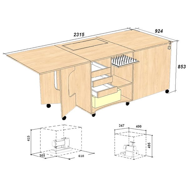 Verwandeltischer Tisch für Nähgeräte mit einem Gewicht von bis zu 10 (15/20) kg